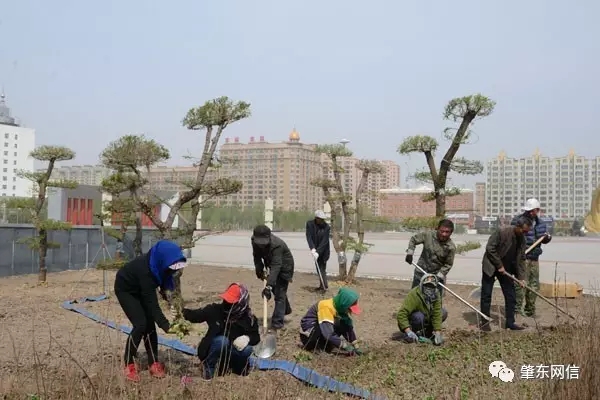5月3日,肇東市園林綠化管理處組織職工采取多種措施,對(duì)人民廣場(chǎng)兩側(cè)裸土地面進(jìn)行植樹(shù)治理,在兩側(cè)栽植剪形榆樹(shù)、紫葉李、金葉榆、山丁樹(shù)、稠李等樹(shù)木,在低洼地帶扦插灌木柳穗5000株;粲老閿z