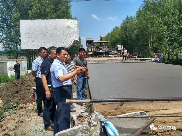 7月3日,市委書記張偉志輕車簡從,深入肇四路施工現(xiàn)場檢查指導(dǎo)工作。在施工現(xiàn)場,交通運(yùn)輸局局長潘振生就道路建設(shè)標(biāo)準(zhǔn)、道路建設(shè)規(guī)模以及道路建設(shè)質(zhì)量控制、安全控制、進(jìn)度控制所采取的措施、計(jì)劃完工通車時間等進(jìn)行了簡要匯報,同時重點(diǎn)介紹了本項(xiàng)目水凝混凝土路面施工采用的先進(jìn)設(shè)備、先進(jìn)工藝:采用的是德國生產(chǎn)的SP850水泥混凝土路面攤鋪機(jī),該設(shè)備在我市水凝混凝土路面施工上首次采用,其施工的技術(shù)特點(diǎn)是施工速度快、效率高、振頻大、平整度好、強(qiáng)度高、耐久性好,集攤鋪、振搗、拉桿布設(shè)一次成型。
