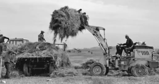 圖為肇東鎮(zhèn)養(yǎng)殖大戶李立民與工人們一起收獲干草飼料。霍永祥記者蘇強攝