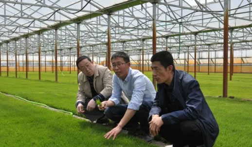 5月10日,肇東市澇洲鎮(zhèn)稻香水稻種植合作社負責(zé)人王瑞昌(中)正在和農(nóng)技人員查看“龍稻18”秧苗長勢。育秧大棚依托自動噴淋系統(tǒng)、補光燈等設(shè)備,使1.5萬盤機插秧苗苗齊苗壯,帶動56戶農(nóng)戶從小拱棚育秧走向智能化育秧。